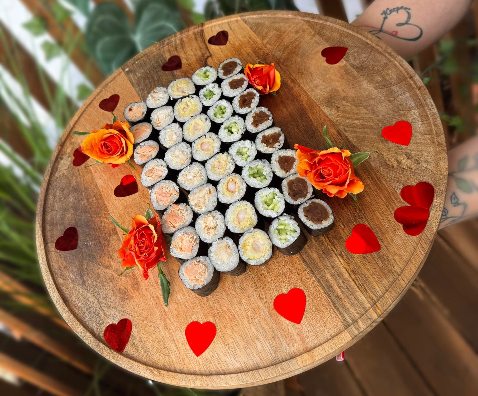Futomaki strips z kurczaka z czerwonym ryżem i sosem samurajskim 6 szt.